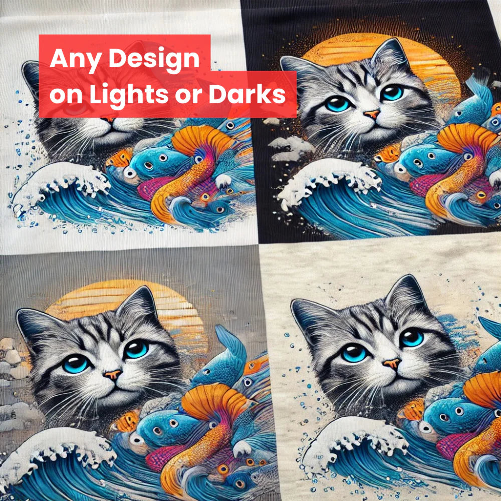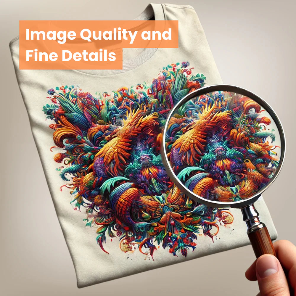 Durable and Eye-Catching Prints: Vibrant colors and fine details on every product, from DTF transfer sheets to custom DTF designs.